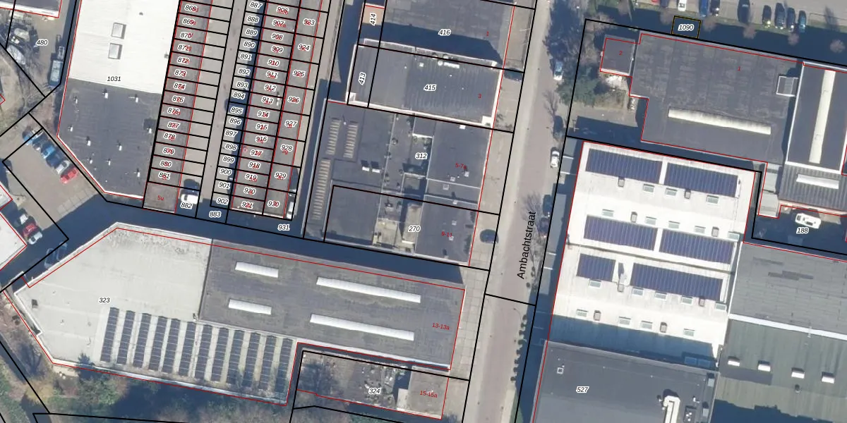 Het perceel waarop Ambachtstraat 9 staat heeft een oppervlakte van 561 m². Dit is een groot perceel. De perceeloppervlakte wordt geregistreerd door het Kadaster. Gedetailleerde informatie over de maten van dit perceel kunt u vinden in het rapport Kadastrale kaart met maatvoering van Ambachtstraat 9.