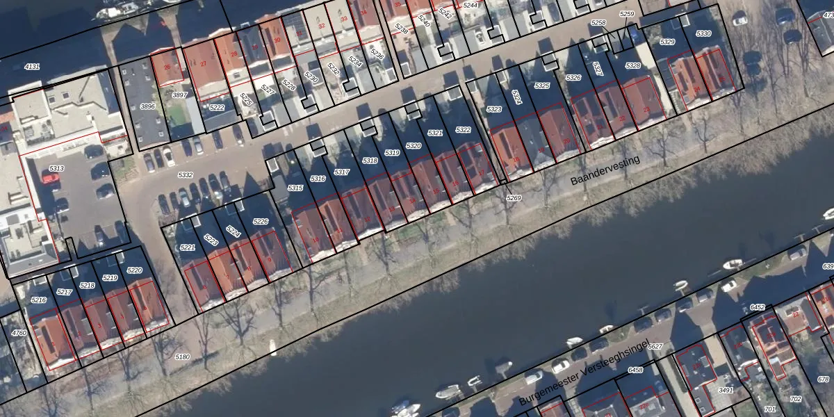 Baandervesting 14 is gelegen op kadastraal perceel EDM00A5319. Deze kadastrale aanduiding is uniek en wordt gebruikt door het Kadaster om eigendomsrechten en andere zakelijke rechten vast te leggen. Het perceel maakt onderdeel uit van de kadastrale gemeente Edam.