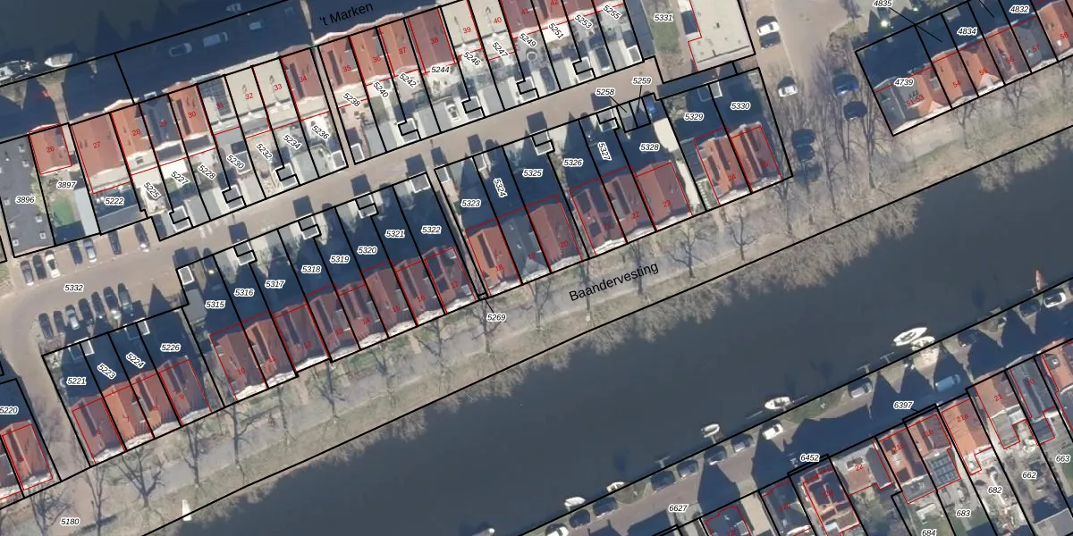 Baandervesting 19 is gelegen op kadastraal perceel EDM00A5324. Deze kadastrale aanduiding is uniek en wordt gebruikt door het Kadaster om eigendomsrechten en andere zakelijke rechten vast te leggen. Het perceel maakt onderdeel uit van de kadastrale gemeente Edam.