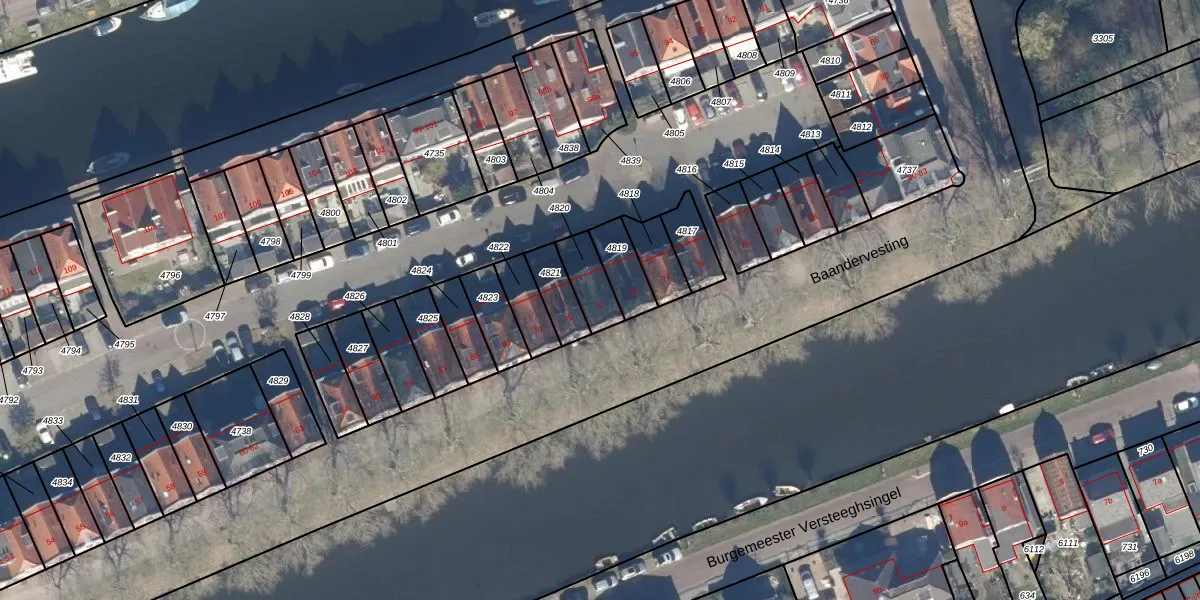 Baandervesting 72 is gelegen op kadastraal perceel EDM00A4820. Deze kadastrale aanduiding is uniek en wordt gebruikt door het Kadaster om eigendomsrechten en andere zakelijke rechten vast te leggen. Het perceel maakt onderdeel uit van de kadastrale gemeente Edam.
