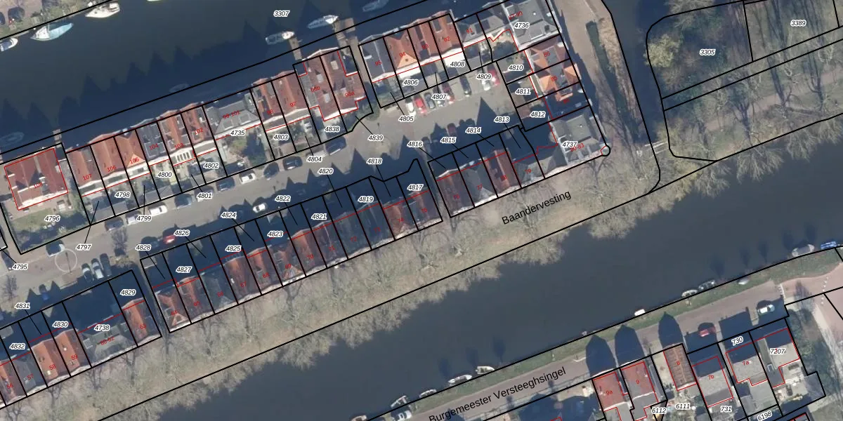 Baandervesting 75 is gelegen op kadastraal perceel EDM00A4817. Deze kadastrale aanduiding is uniek en wordt gebruikt door het Kadaster om eigendomsrechten en andere zakelijke rechten vast te leggen. Het perceel maakt onderdeel uit van de kadastrale gemeente Edam.