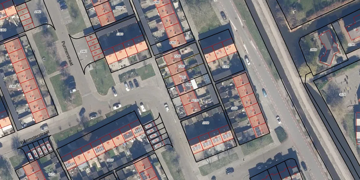 Gebruik de zoekbalk of klik op een perceel voor informatie over de adressen binnen dit perceel.