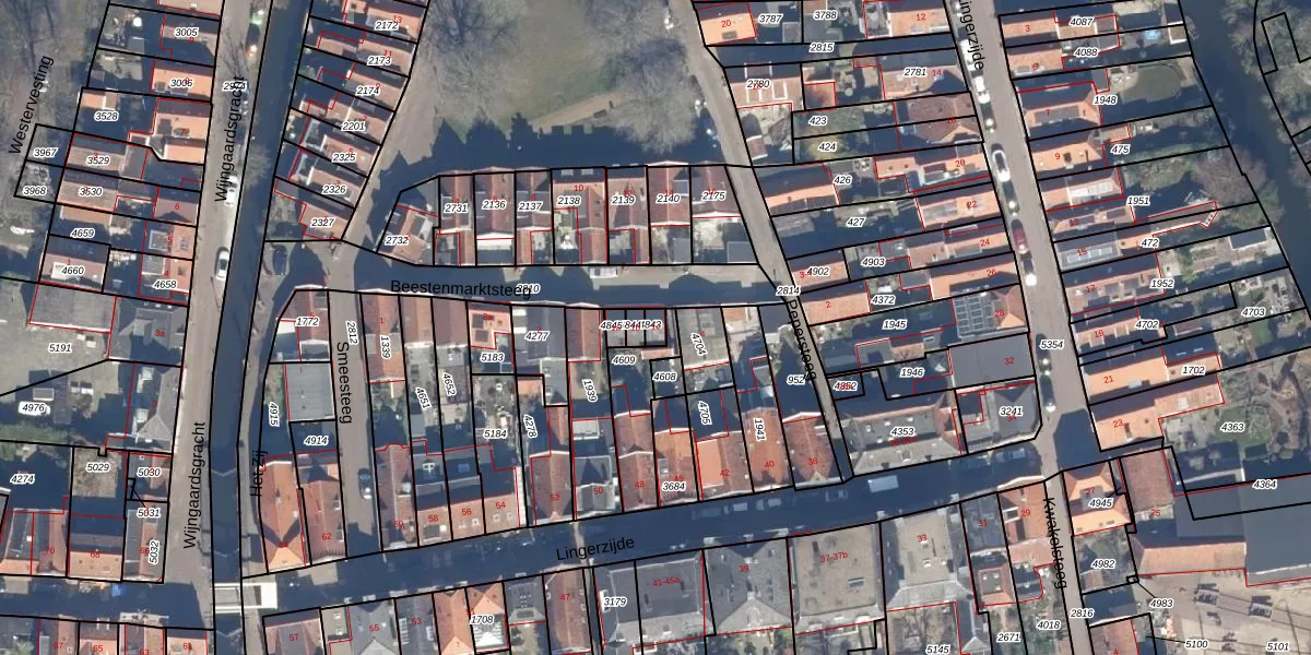 Het perceel waarop Beestenmarktsteeg 1-c staat heeft een oppervlakte van 19 m². Dit is een klein perceel. De perceeloppervlakte wordt geregistreerd door het Kadaster. Gedetailleerde informatie over de maten van dit perceel kunt u vinden in het rapport Kadastrale kaart met maatvoering van Beestenmarktsteeg 1-c.