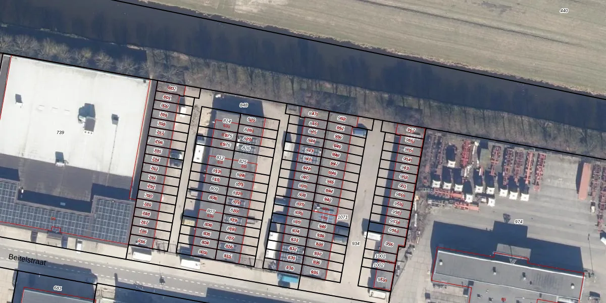 Het perceel waarop Beitelstraat 67-p staat heeft een oppervlakte van 39 m². Dit is een klein perceel. De perceeloppervlakte wordt geregistreerd door het Kadaster. Gedetailleerde informatie over de maten van dit perceel kunt u vinden in het rapport Kadastrale kaart met maatvoering van Beitelstraat 67-p.