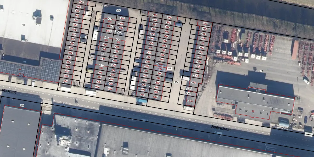 Het perceel waarop Beitelstraat 69-e staat heeft een oppervlakte van 39 m². Dit is een klein perceel. De perceeloppervlakte wordt geregistreerd door het Kadaster. Gedetailleerde informatie over de maten van dit perceel kunt u vinden in het rapport Kadastrale kaart met maatvoering van Beitelstraat 69-e.