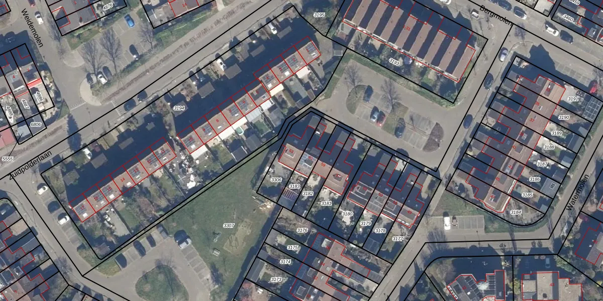Het perceel waarop Bergmolen 63 staat heeft een oppervlakte van 234 m². Dit is een middelgroot perceel. De perceeloppervlakte wordt geregistreerd door het Kadaster. Gedetailleerde informatie over de maten van dit perceel kunt u vinden in het rapport Kadastrale kaart met maatvoering van Bergmolen 63.