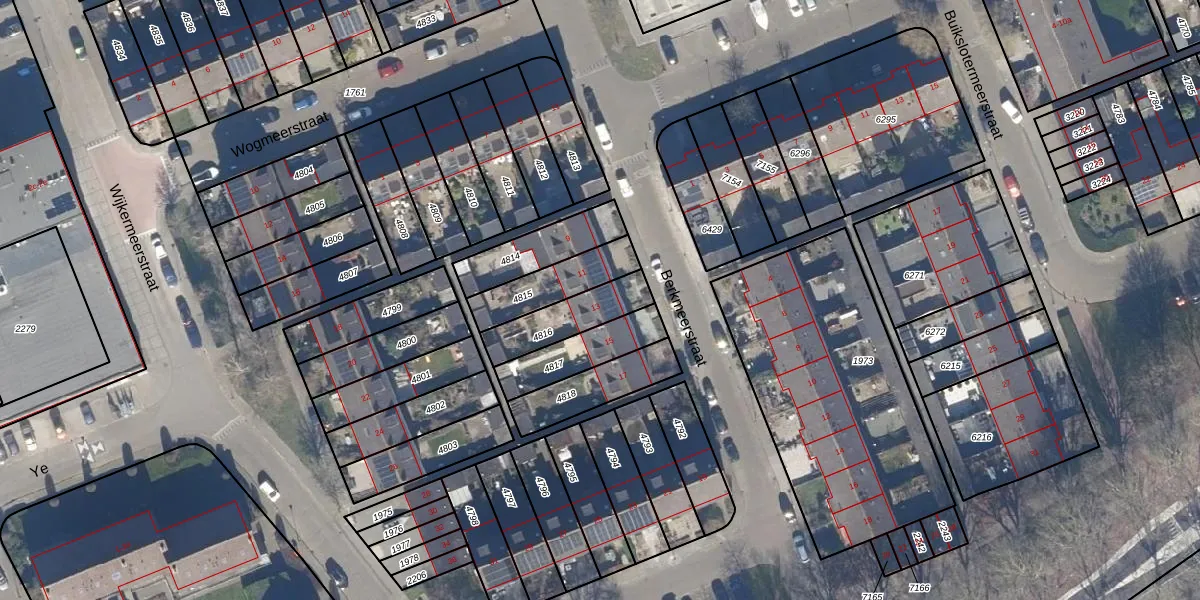 Gebruik de zoekbalk of klik op een perceel voor informatie over de adressen binnen dit perceel.