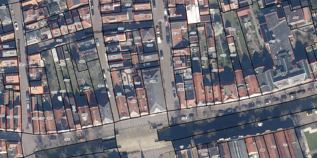 Het perceel waarop Breestraat 1 staat heeft een oppervlakte van 325 m². Dit is een groot perceel. De perceeloppervlakte wordt geregistreerd door het Kadaster. Gedetailleerde informatie over de maten van dit perceel kunt u vinden in het rapport Kadastrale kaart met maatvoering van Breestraat 1.