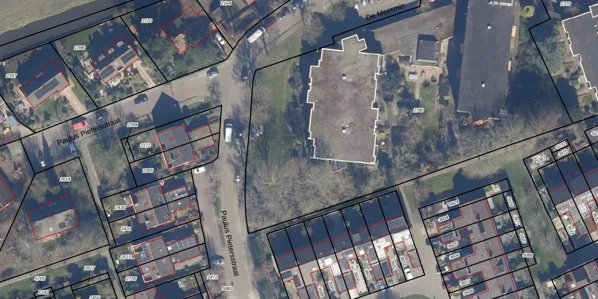 Het perceel waarop De Meermin 118 staat heeft een oppervlakte van 6619 m². Dit is een zeer groot perceel. De perceeloppervlakte wordt geregistreerd door het Kadaster. Gedetailleerde informatie over de maten van dit perceel kunt u vinden in het rapport Kadastrale kaart met maatvoering van De Meermin 118.