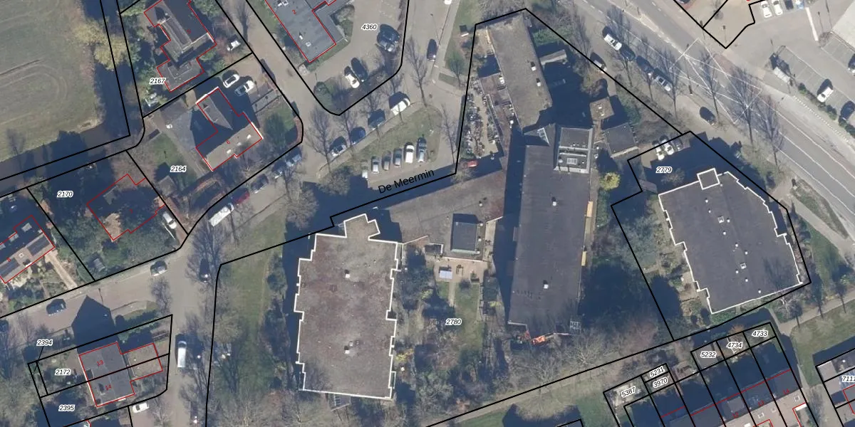 Het perceel waarop De Meermin 76 staat heeft een oppervlakte van 6619 m². Dit is een zeer groot perceel. De perceeloppervlakte wordt geregistreerd door het Kadaster. Gedetailleerde informatie over de maten van dit perceel kunt u vinden in het rapport Kadastrale kaart met maatvoering van De Meermin 76.