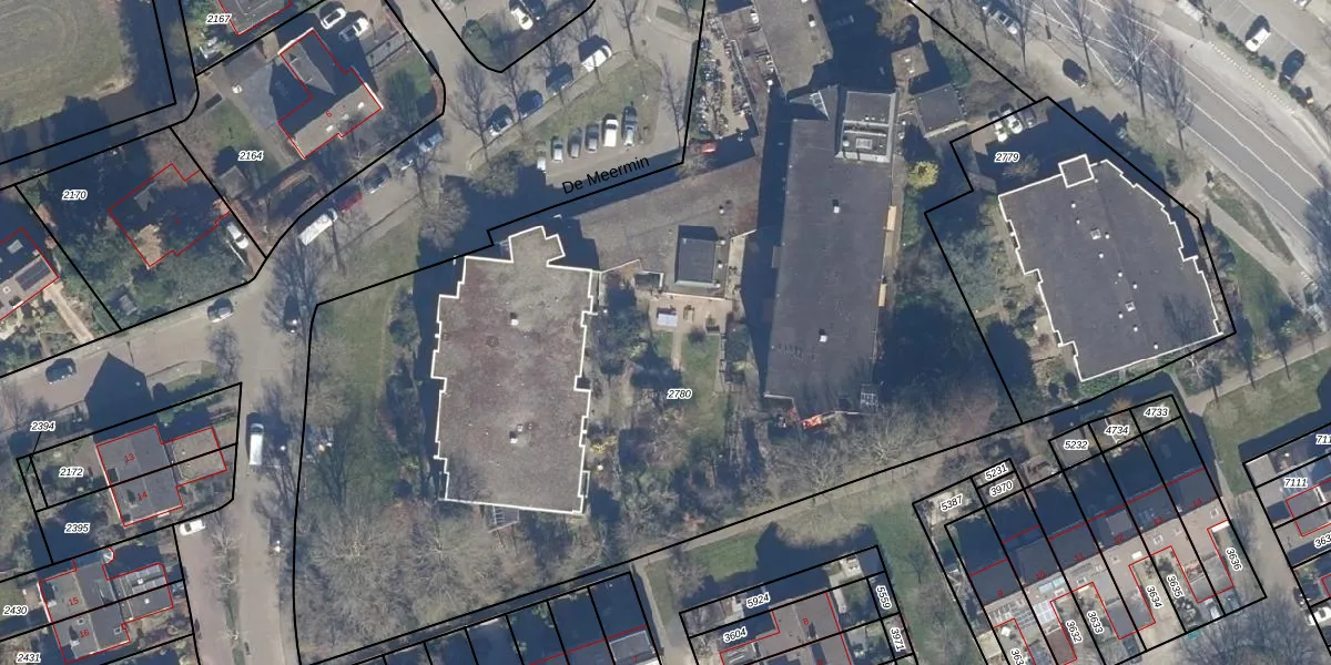 Het perceel waarop De Meermin 83 staat heeft een oppervlakte van 6619 m². Dit is een zeer groot perceel. De perceeloppervlakte wordt geregistreerd door het Kadaster. Gedetailleerde informatie over de maten van dit perceel kunt u vinden in het rapport Kadastrale kaart met maatvoering van De Meermin 83.