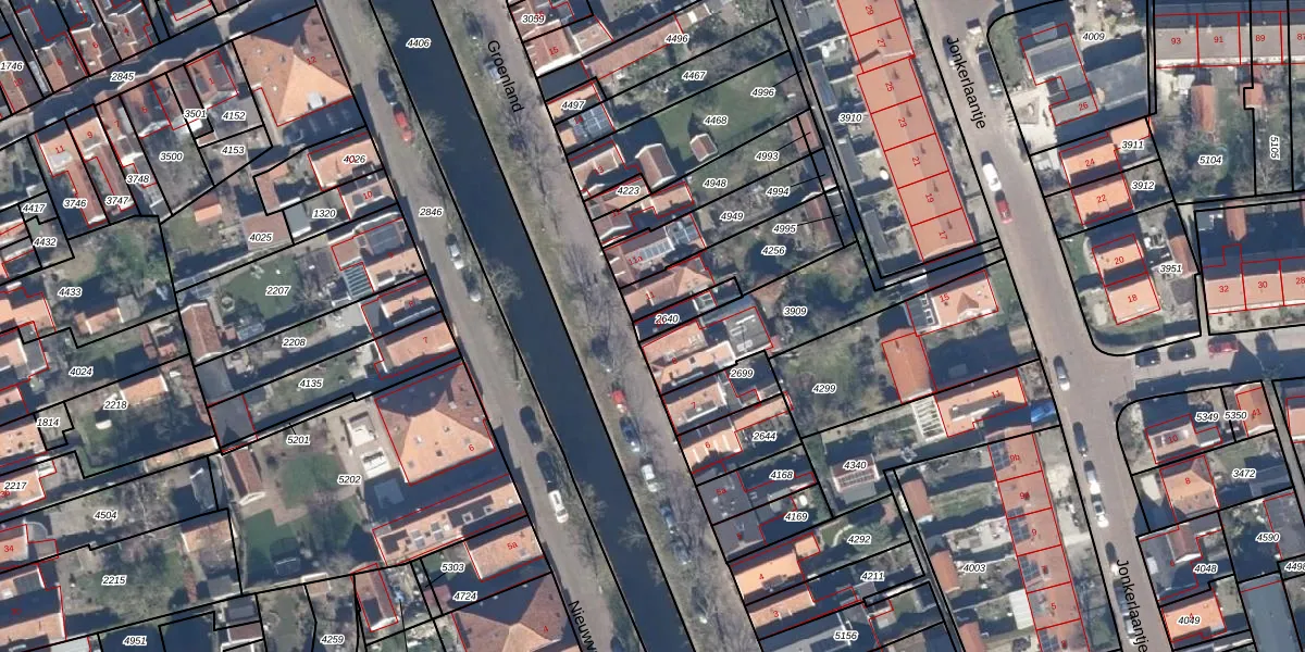 Het perceel waarop Groenland 10 staat heeft een oppervlakte van 56 m². Dit is een klein perceel. De perceeloppervlakte wordt geregistreerd door het Kadaster. Gedetailleerde informatie over de maten van dit perceel kunt u vinden in het rapport Kadastrale kaart met maatvoering van Groenland 10.