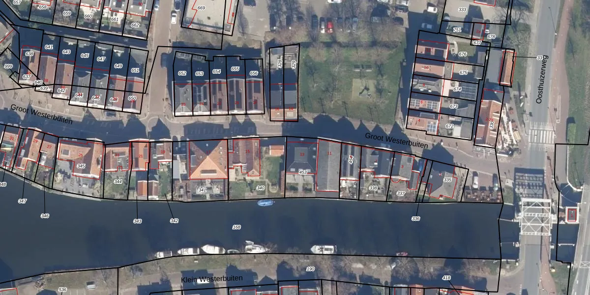 Het perceel waarop Groot Westerbuiten 13 staat heeft een oppervlakte van 374 m². Dit is een groot perceel. De perceeloppervlakte wordt geregistreerd door het Kadaster. Gedetailleerde informatie over de maten van dit perceel kunt u vinden in het rapport Kadastrale kaart met maatvoering van Groot Westerbuiten 13.