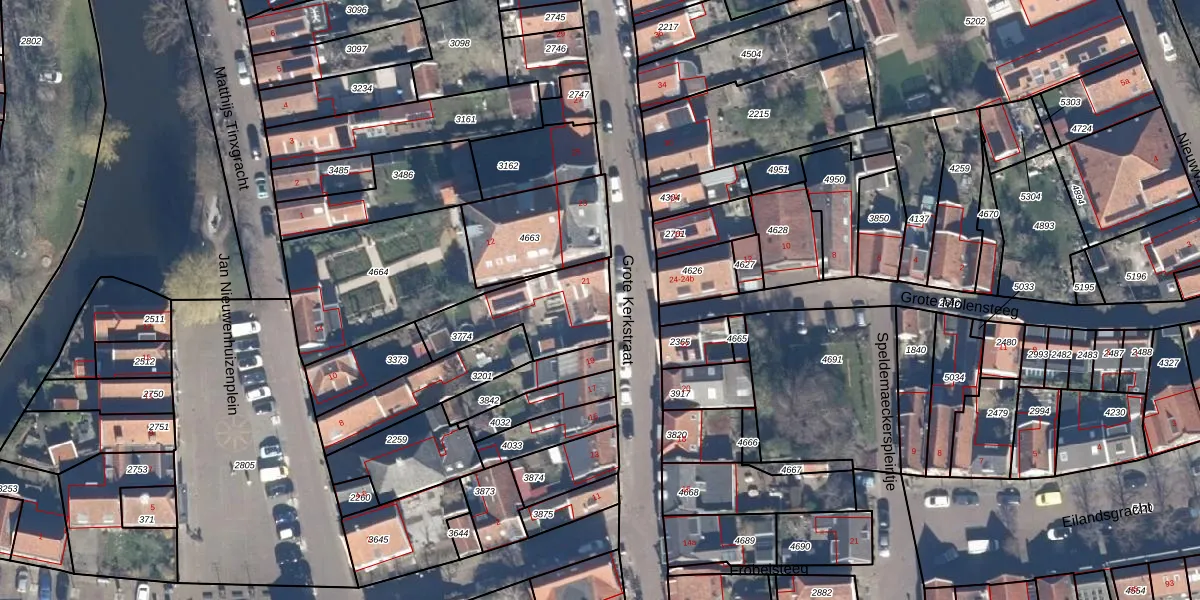 Het perceel waarop Grote Kerkstraat 21 staat heeft een oppervlakte van 339 m². Dit is een groot perceel. De perceeloppervlakte wordt geregistreerd door het Kadaster. Gedetailleerde informatie over de maten van dit perceel kunt u vinden in het rapport Kadastrale kaart met maatvoering van Grote Kerkstraat 21.