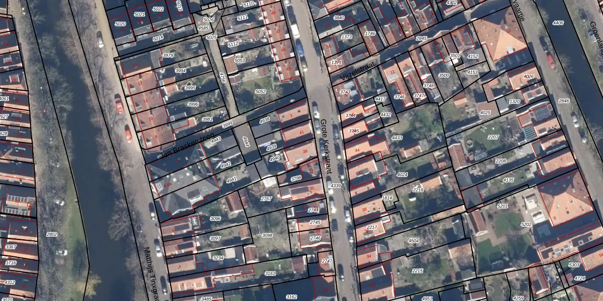 Het perceel waarop Grote Kerkstraat 39 staat heeft een oppervlakte van 155 m². Dit is een middelgroot perceel. De perceeloppervlakte wordt geregistreerd door het Kadaster. Gedetailleerde informatie over de maten van dit perceel kunt u vinden in het rapport Kadastrale kaart met maatvoering van Grote Kerkstraat 39.