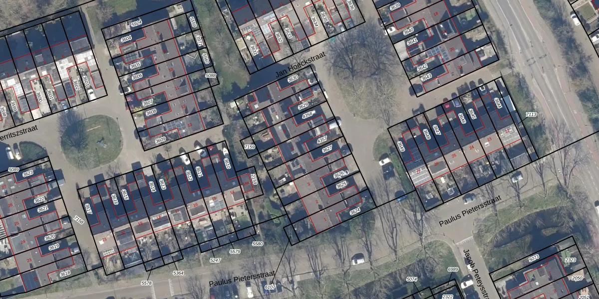 Het perceel waarop Jan Hoeckstraat 5 staat heeft een oppervlakte van 182 m². Dit is een middelgroot perceel. De perceeloppervlakte wordt geregistreerd door het Kadaster. Gedetailleerde informatie over de maten van dit perceel kunt u vinden in het rapport Kadastrale kaart met maatvoering van Jan Hoeckstraat 5.