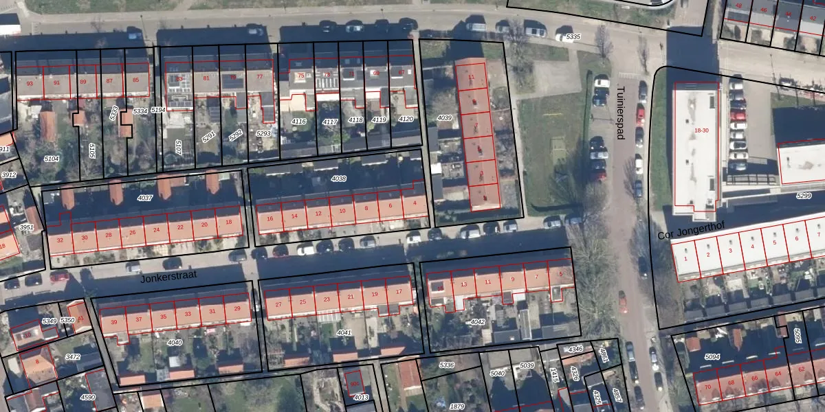 Het perceel waarop Jonkerstraat 4 staat heeft een oppervlakte van 806 m². Dit is een groot perceel. De perceeloppervlakte wordt geregistreerd door het Kadaster. Gedetailleerde informatie over de maten van dit perceel kunt u vinden in het rapport Kadastrale kaart met maatvoering van Jonkerstraat 4.