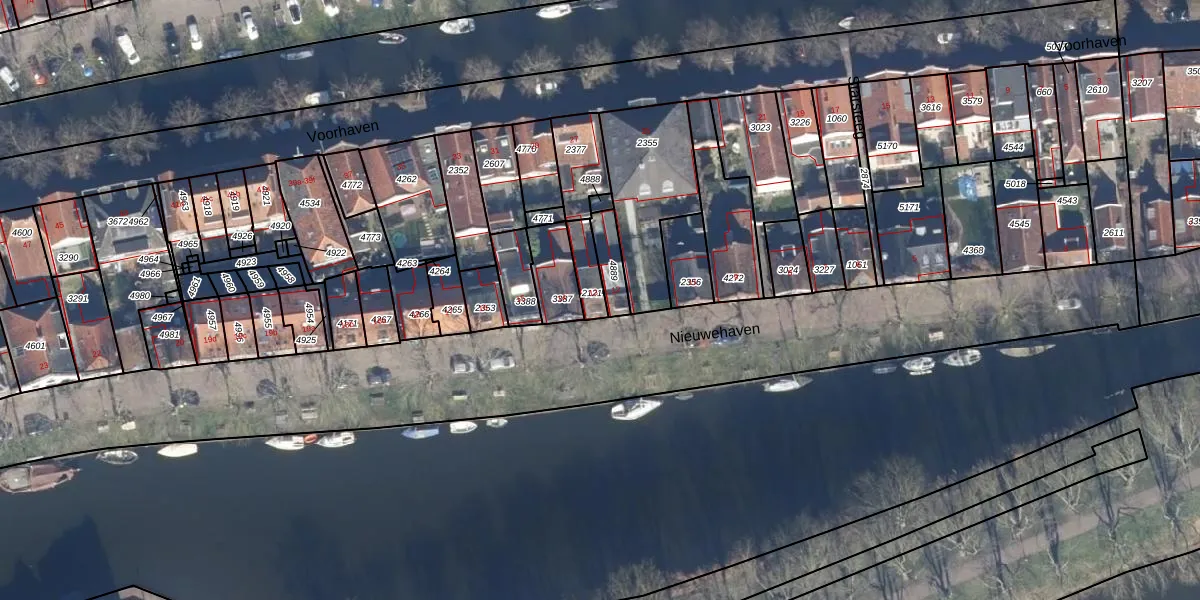 Het perceel waarop Nieuwehaven 13 staat heeft een oppervlakte van 65 m². Dit is een klein perceel. De perceeloppervlakte wordt geregistreerd door het Kadaster. Gedetailleerde informatie over de maten van dit perceel kunt u vinden in het rapport Kadastrale kaart met maatvoering van Nieuwehaven 13.