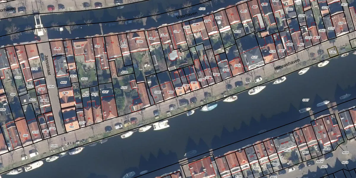 Het perceel waarop Nieuwehaven 42 staat heeft een oppervlakte van 66 m². Dit is een klein perceel. De perceeloppervlakte wordt geregistreerd door het Kadaster. Gedetailleerde informatie over de maten van dit perceel kunt u vinden in het rapport Kadastrale kaart met maatvoering van Nieuwehaven 42.