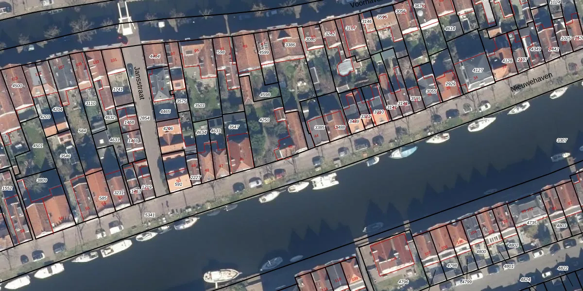 Het perceel waarop Nieuwehaven 45 staat heeft een oppervlakte van 431 m². Dit is een groot perceel. De perceeloppervlakte wordt geregistreerd door het Kadaster. Gedetailleerde informatie over de maten van dit perceel kunt u vinden in het rapport Kadastrale kaart met maatvoering van Nieuwehaven 45.