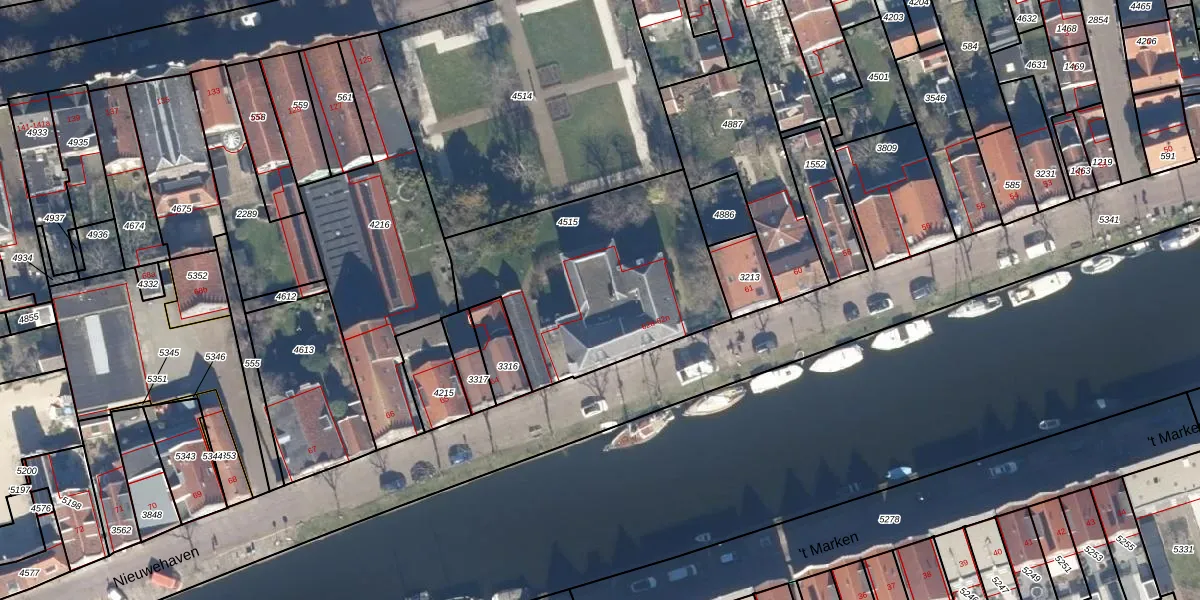 Het perceel waarop Nieuwehaven 62-p staat heeft een oppervlakte van 1025 m². Dit is een zeer groot perceel. De perceeloppervlakte wordt geregistreerd door het Kadaster. Gedetailleerde informatie over de maten van dit perceel kunt u vinden in het rapport Kadastrale kaart met maatvoering van Nieuwehaven 62-p.
