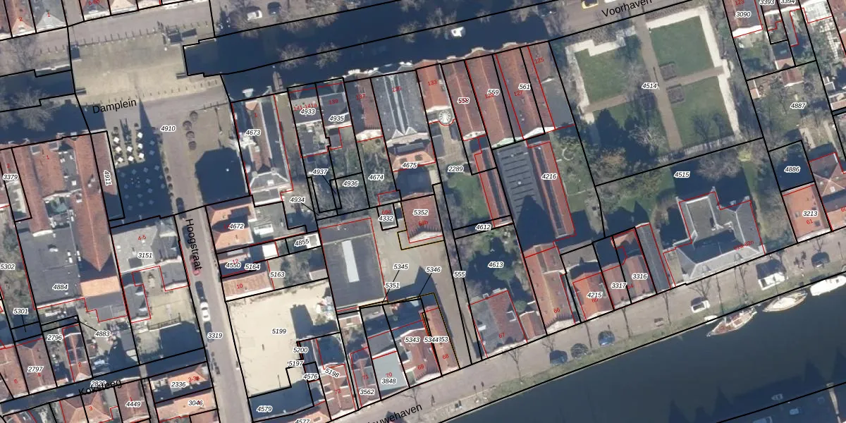 Gebruik de zoekbalk of klik op een perceel voor informatie over de adressen binnen dit perceel.