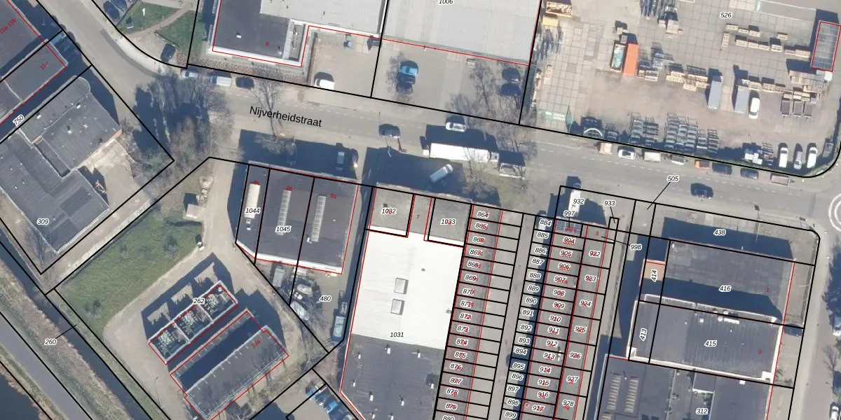 Het perceel waarop Nijverheidstraat 7 staat heeft een oppervlakte van 1251 m². Dit is een zeer groot perceel. De perceeloppervlakte wordt geregistreerd door het Kadaster. Gedetailleerde informatie over de maten van dit perceel kunt u vinden in het rapport Kadastrale kaart met maatvoering van Nijverheidstraat 7.