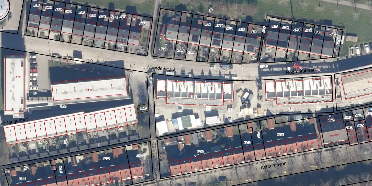 Het perceel waarop Noorderstraat 51 staat heeft een oppervlakte van 2195 m². Dit is een zeer groot perceel. De perceeloppervlakte wordt geregistreerd door het Kadaster. Gedetailleerde informatie over de maten van dit perceel kunt u vinden in het rapport Kadastrale kaart met maatvoering van Noorderstraat 51.