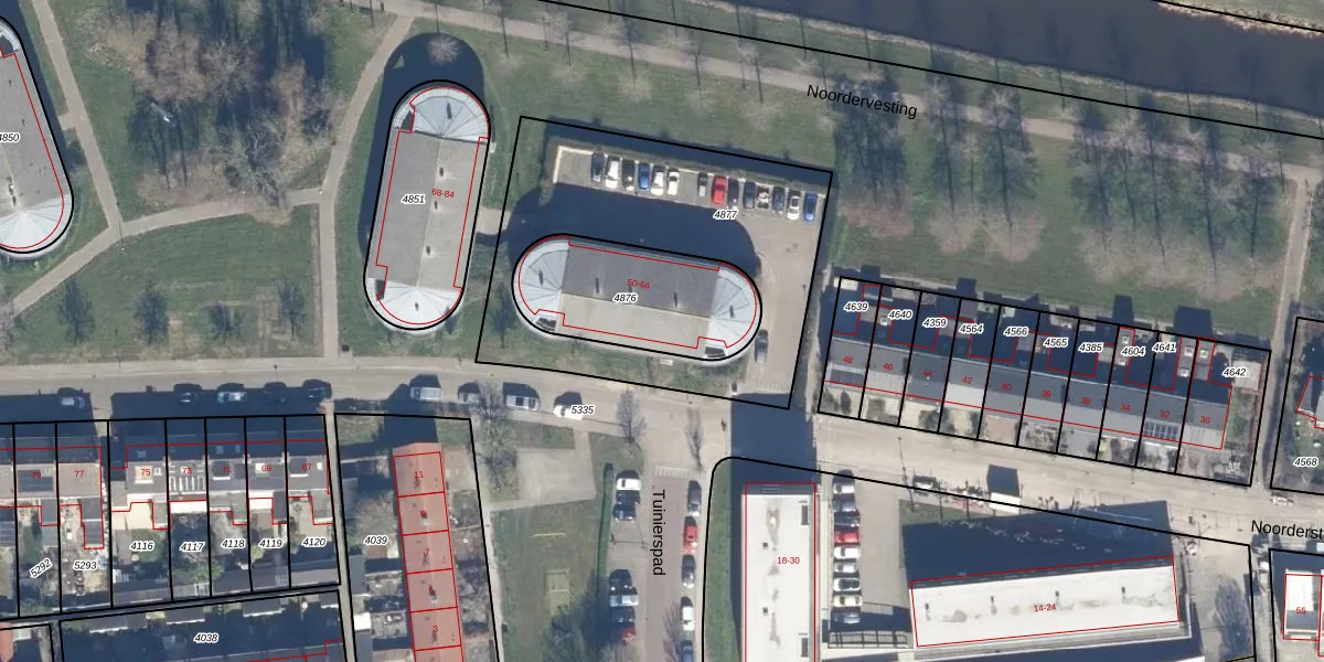 Het perceel waarop Noorderstraat 54 staat heeft een oppervlakte van 520 m². Dit is een groot perceel. De perceeloppervlakte wordt geregistreerd door het Kadaster. Gedetailleerde informatie over de maten van dit perceel kunt u vinden in het rapport Kadastrale kaart met maatvoering van Noorderstraat 54.