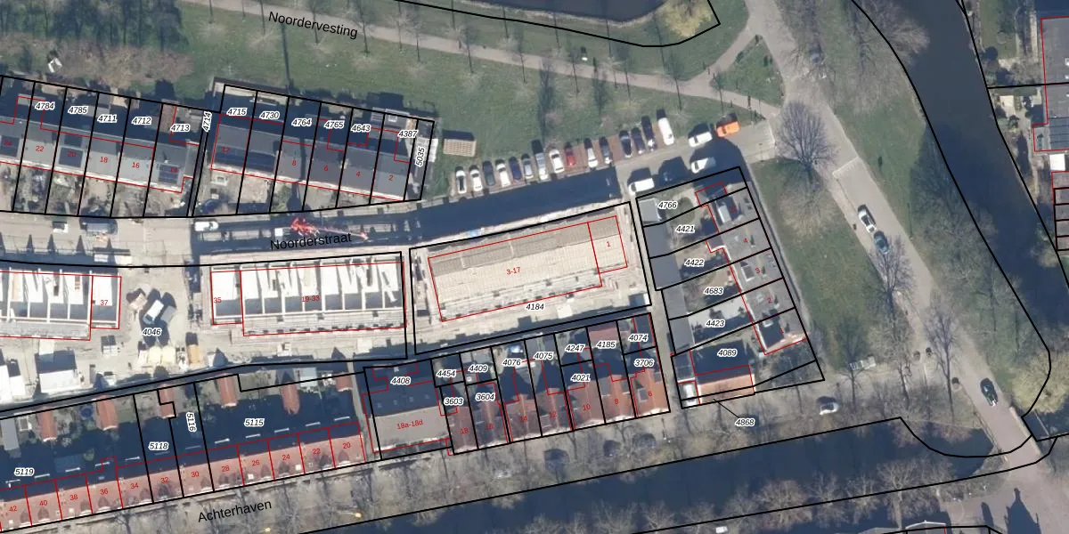 Noorderstraat 9 is gelegen op kadastraal perceel EDM00A4184. Deze kadastrale aanduiding is uniek en wordt gebruikt door het Kadaster om eigendomsrechten en andere zakelijke rechten vast te leggen. Het perceel maakt onderdeel uit van de kadastrale gemeente Edam.