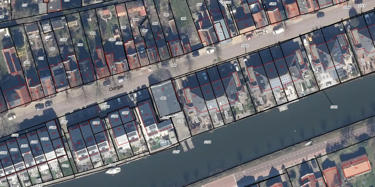 Het perceel waarop Oorgat 15-c staat heeft een oppervlakte van 412 m². Dit is een groot perceel. De perceeloppervlakte wordt geregistreerd door het Kadaster. Gedetailleerde informatie over de maten van dit perceel kunt u vinden in het rapport Kadastrale kaart met maatvoering van Oorgat 15-c.