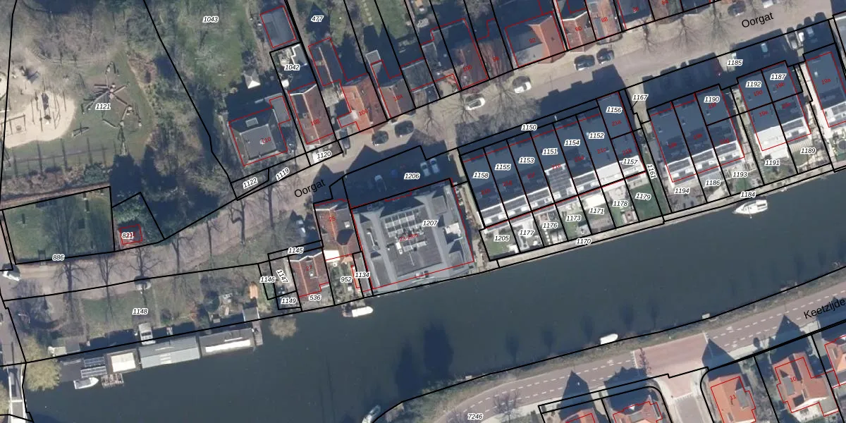 Het perceel waarop Oorgat 23-e staat heeft een oppervlakte van 592 m². Dit is een groot perceel. De perceeloppervlakte wordt geregistreerd door het Kadaster. Gedetailleerde informatie over de maten van dit perceel kunt u vinden in het rapport Kadastrale kaart met maatvoering van Oorgat 23-e.
