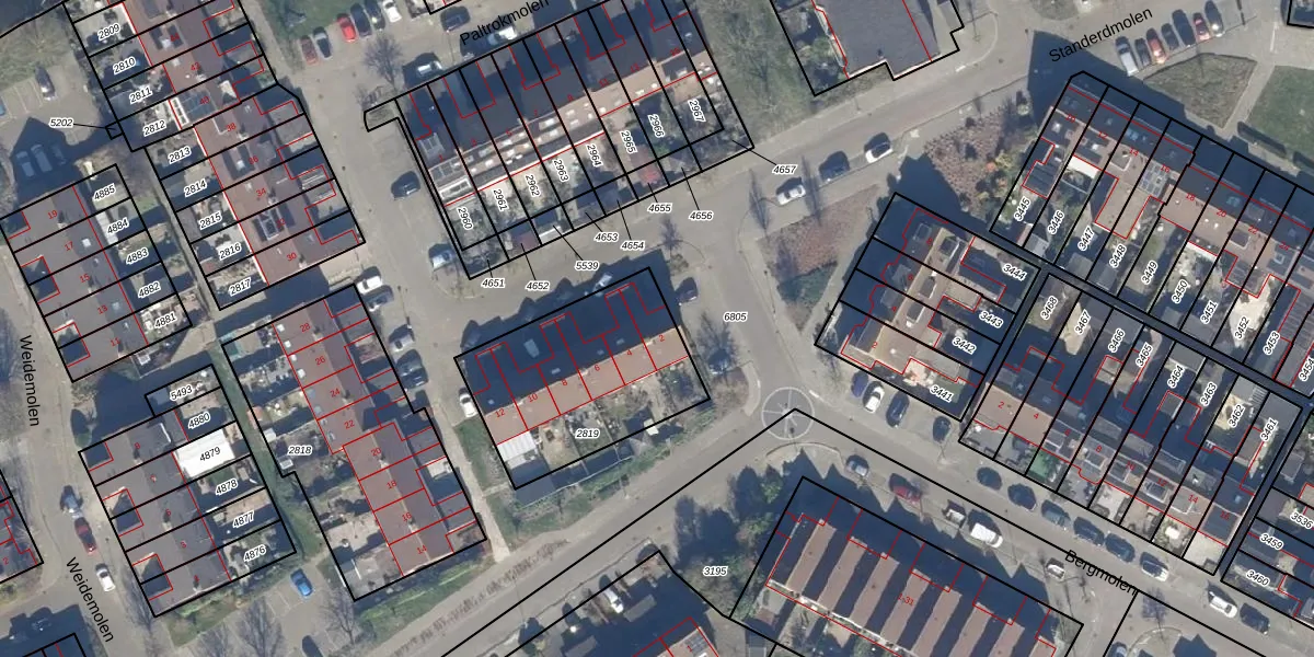 Het perceel waarop Paltrokmolen 2 staat heeft een oppervlakte van 722 m². Dit is een groot perceel. De perceeloppervlakte wordt geregistreerd door het Kadaster. Gedetailleerde informatie over de maten van dit perceel kunt u vinden in het rapport Kadastrale kaart met maatvoering van Paltrokmolen 2.