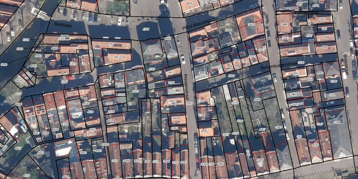 Het perceel waarop Prinsenstraat 7 staat heeft een oppervlakte van 95 m². Dit is een klein perceel. De perceeloppervlakte wordt geregistreerd door het Kadaster. Gedetailleerde informatie over de maten van dit perceel kunt u vinden in het rapport Kadastrale kaart met maatvoering van Prinsenstraat 7.