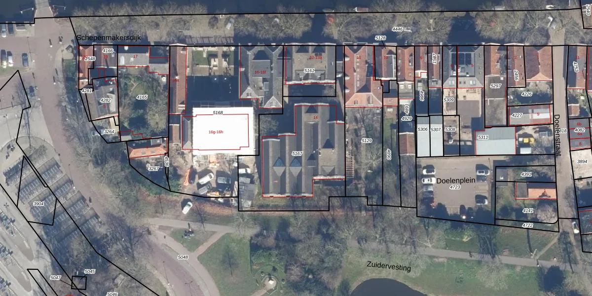 Het perceel waarop Schepenmakersdijk 14 staat heeft een oppervlakte van 1232 m². Dit is een zeer groot perceel. De perceeloppervlakte wordt geregistreerd door het Kadaster. Gedetailleerde informatie over de maten van dit perceel kunt u vinden in het rapport Kadastrale kaart met maatvoering van Schepenmakersdijk 14.