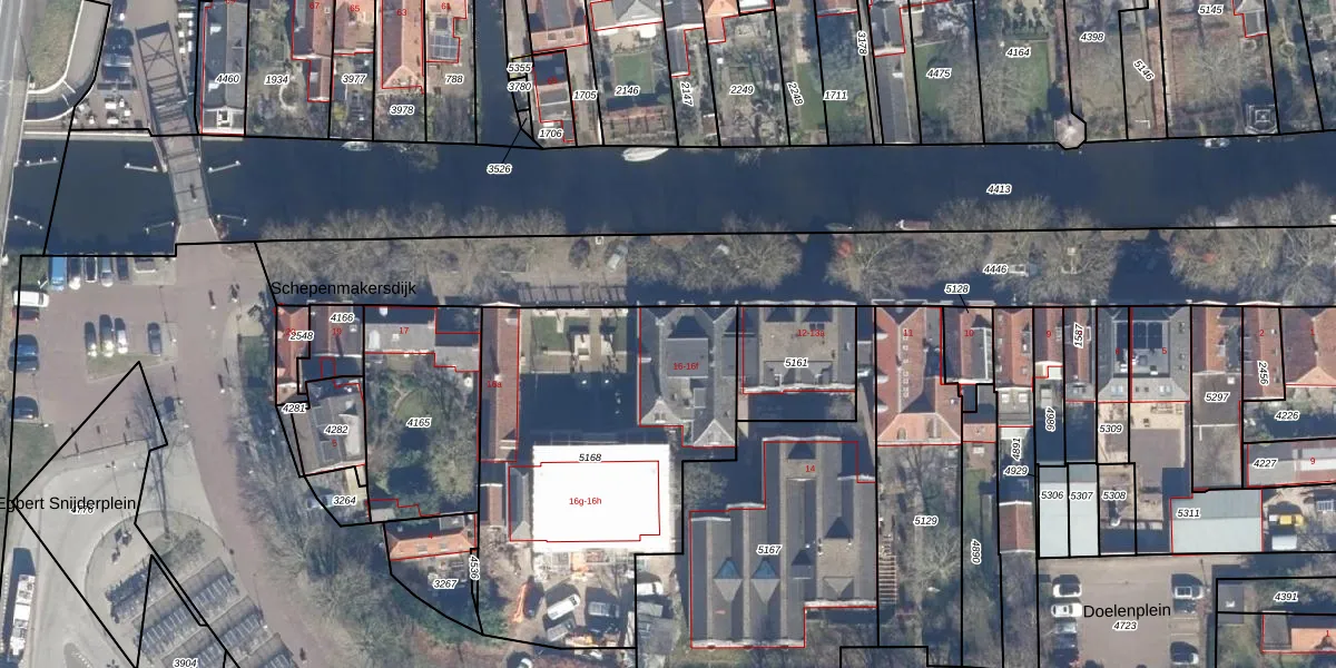 Het perceel waarop Schepenmakersdijk 16-c staat heeft een oppervlakte van 1630 m². Dit is een zeer groot perceel. De perceeloppervlakte wordt geregistreerd door het Kadaster. Gedetailleerde informatie over de maten van dit perceel kunt u vinden in het rapport Kadastrale kaart met maatvoering van Schepenmakersdijk 16-c.