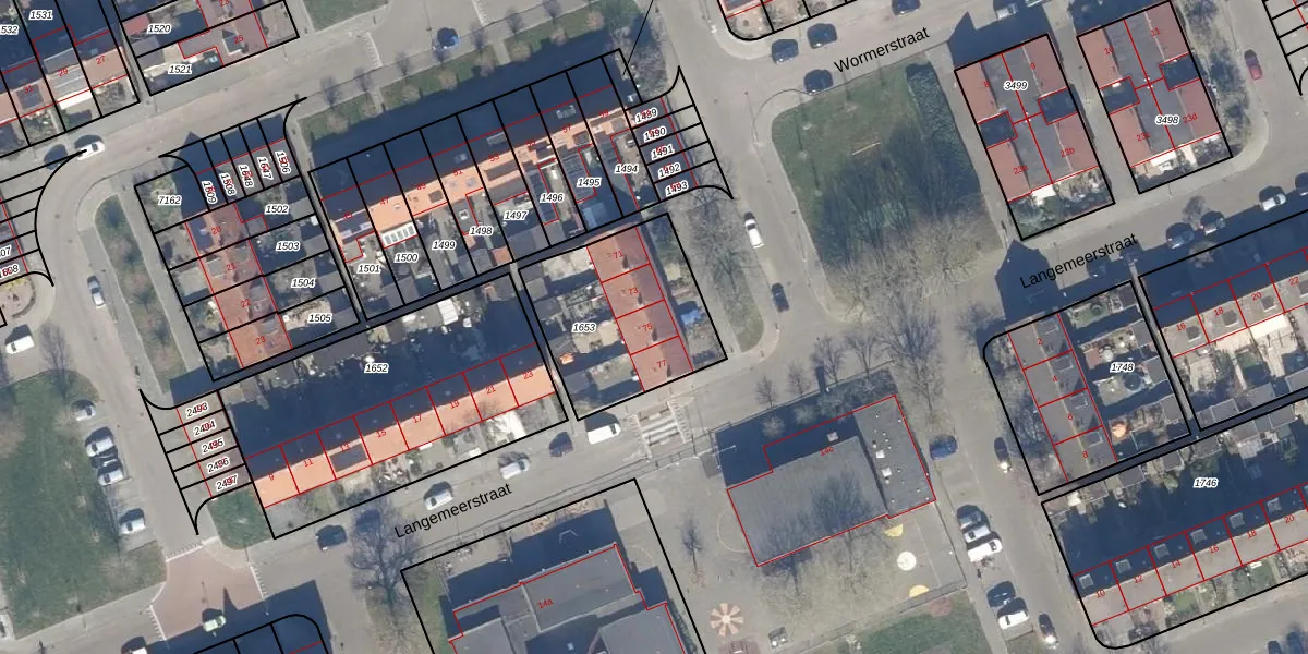 Het perceel waarop Schermerstraat 75 staat heeft een oppervlakte van 590 m². Dit is een groot perceel. De perceeloppervlakte wordt geregistreerd door het Kadaster. Gedetailleerde informatie over de maten van dit perceel kunt u vinden in het rapport Kadastrale kaart met maatvoering van Schermerstraat 75.