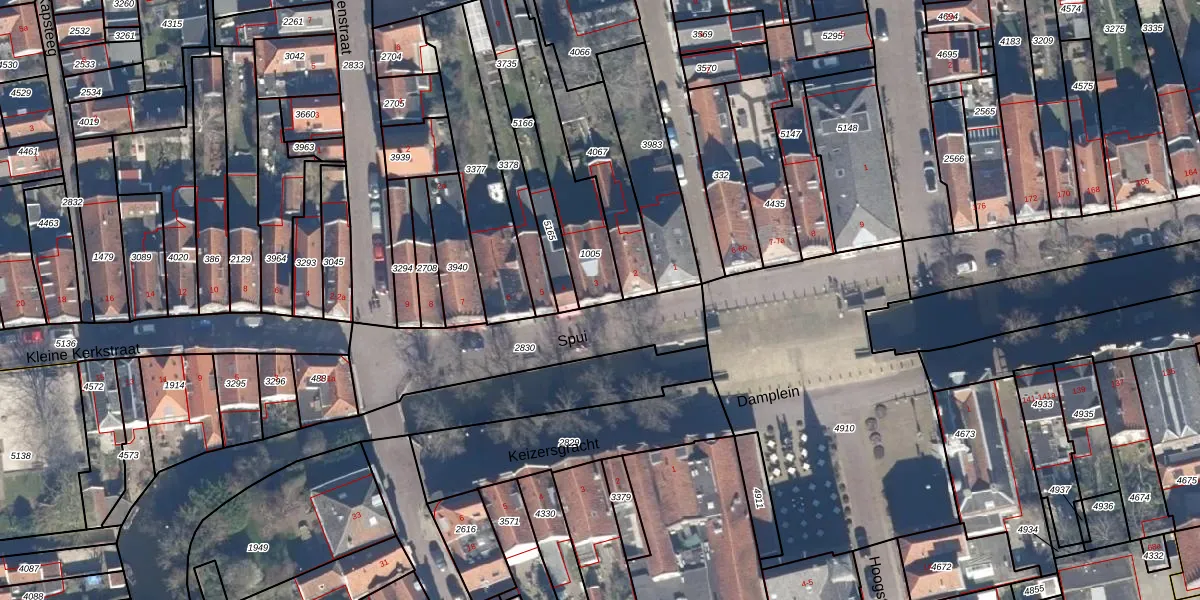 Het perceel waarop Spui 3 staat heeft een oppervlakte van 311 m². Dit is een groot perceel. De perceeloppervlakte wordt geregistreerd door het Kadaster. Gedetailleerde informatie over de maten van dit perceel kunt u vinden in het rapport Kadastrale kaart met maatvoering van Spui 3.