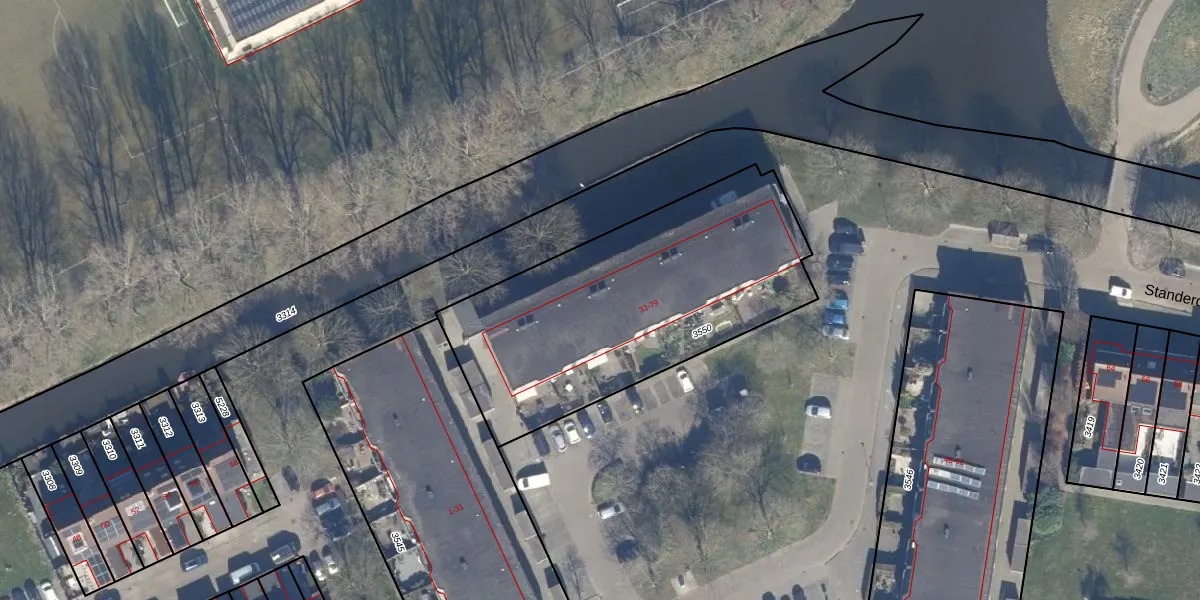 Het perceel waarop Standerdmolen 41 staat heeft een oppervlakte van 1493 m². Dit is een zeer groot perceel. De perceeloppervlakte wordt geregistreerd door het Kadaster. Gedetailleerde informatie over de maten van dit perceel kunt u vinden in het rapport Kadastrale kaart met maatvoering van Standerdmolen 41.
