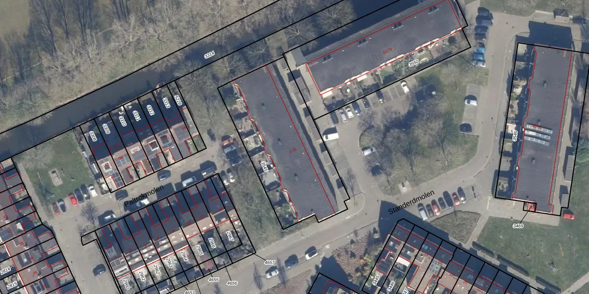 Het perceel waarop Standerdmolen 7 staat heeft een oppervlakte van 1365 m². Dit is een zeer groot perceel. De perceeloppervlakte wordt geregistreerd door het Kadaster. Gedetailleerde informatie over de maten van dit perceel kunt u vinden in het rapport Kadastrale kaart met maatvoering van Standerdmolen 7.
