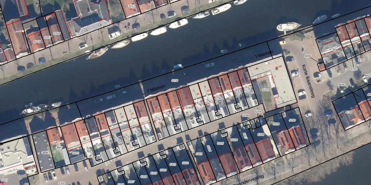 't Marken 38 is gelegen op kadastraal perceel EDM00A5244. Deze kadastrale aanduiding is uniek en wordt gebruikt door het Kadaster om eigendomsrechten en andere zakelijke rechten vast te leggen. Het perceel maakt onderdeel uit van de kadastrale gemeente Edam.