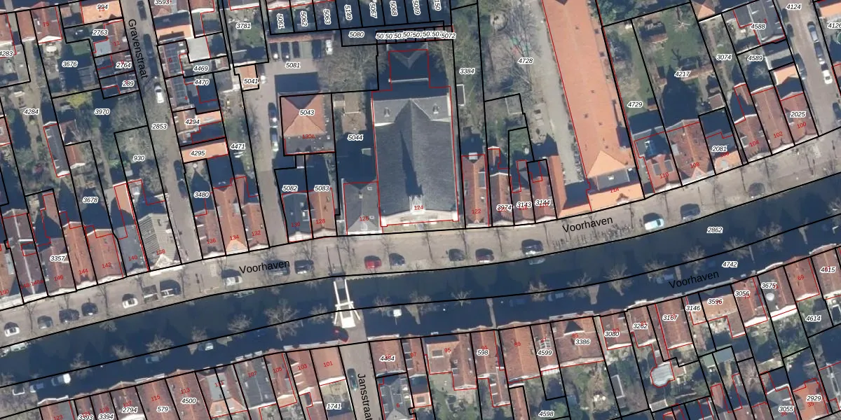 Het perceel waarop Voorhaven 124 staat heeft een oppervlakte van 1228 m². Dit is een zeer groot perceel. De perceeloppervlakte wordt geregistreerd door het Kadaster. Gedetailleerde informatie over de maten van dit perceel kunt u vinden in het rapport Kadastrale kaart met maatvoering van Voorhaven 124.