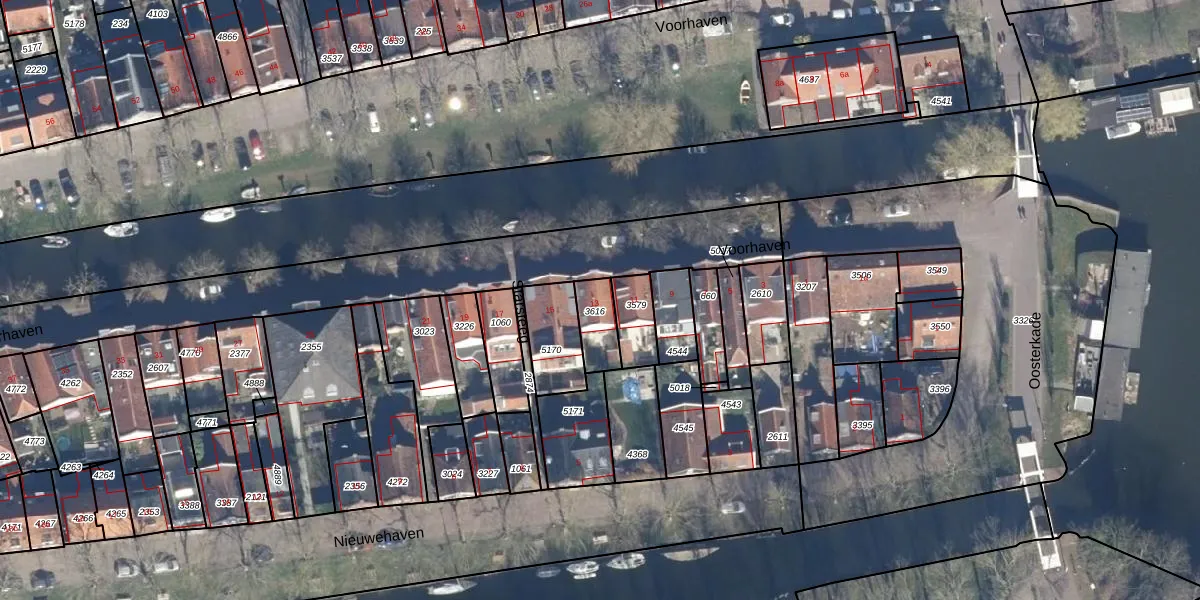 Het perceel waarop Voorhaven 13 staat heeft een oppervlakte van 96 m². Dit is een klein perceel. De perceeloppervlakte wordt geregistreerd door het Kadaster. Gedetailleerde informatie over de maten van dit perceel kunt u vinden in het rapport Kadastrale kaart met maatvoering van Voorhaven 13.