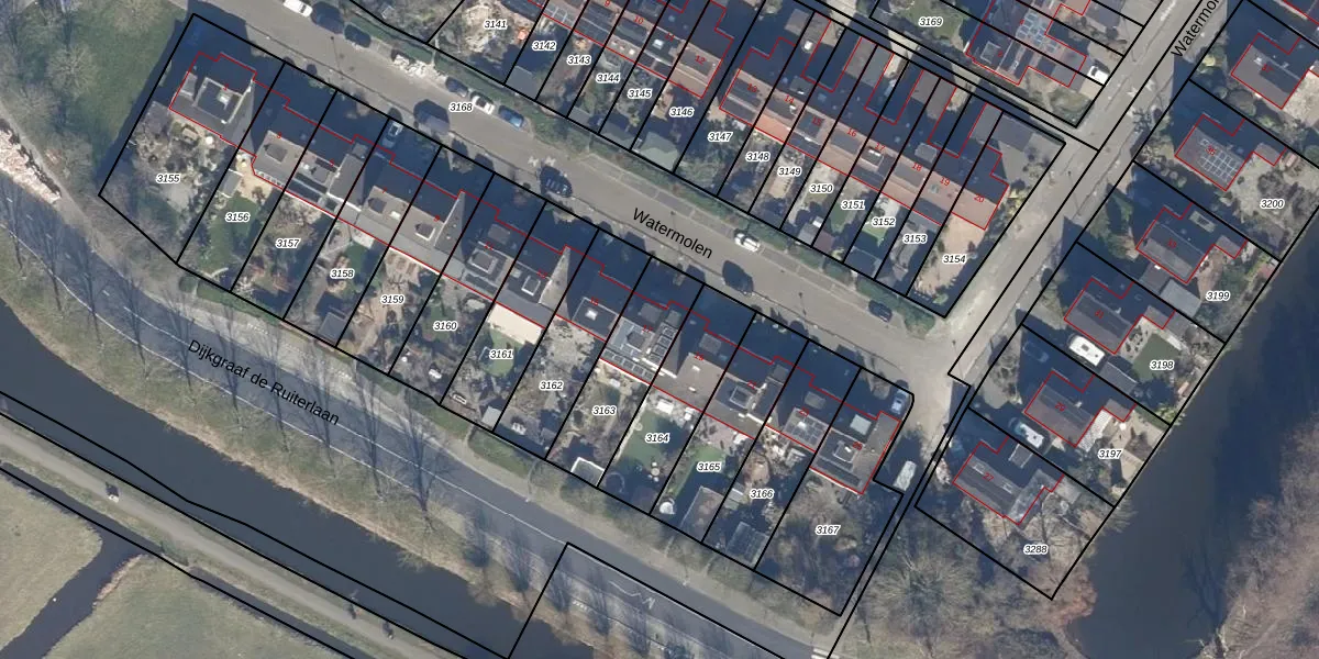 Het perceel waarop Watermolen 17 staat heeft een oppervlakte van 316 m². Dit is een groot perceel. De perceeloppervlakte wordt geregistreerd door het Kadaster. Gedetailleerde informatie over de maten van dit perceel kunt u vinden in het rapport Kadastrale kaart met maatvoering van Watermolen 17.