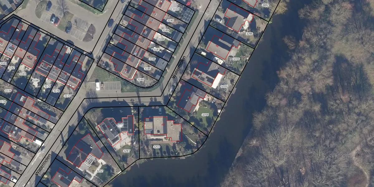 Het perceel waarop Watermolen 45 staat heeft een oppervlakte van 513 m². Dit is een groot perceel. De perceeloppervlakte wordt geregistreerd door het Kadaster. Gedetailleerde informatie over de maten van dit perceel kunt u vinden in het rapport Kadastrale kaart met maatvoering van Watermolen 45.