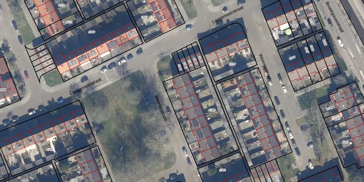 Het perceel waarop Weerenstraat 4 staat heeft een oppervlakte van 1252 m². Dit is een zeer groot perceel. De perceeloppervlakte wordt geregistreerd door het Kadaster. Gedetailleerde informatie over de maten van dit perceel kunt u vinden in het rapport Kadastrale kaart met maatvoering van Weerenstraat 4.