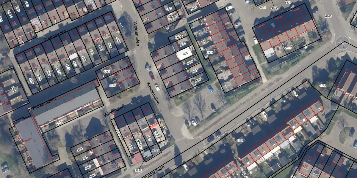 Het perceel waarop Weidemolen 1 staat heeft een oppervlakte van 130 m². Dit is een middelgroot perceel. De perceeloppervlakte wordt geregistreerd door het Kadaster. Gedetailleerde informatie over de maten van dit perceel kunt u vinden in het rapport Kadastrale kaart met maatvoering van Weidemolen 1.