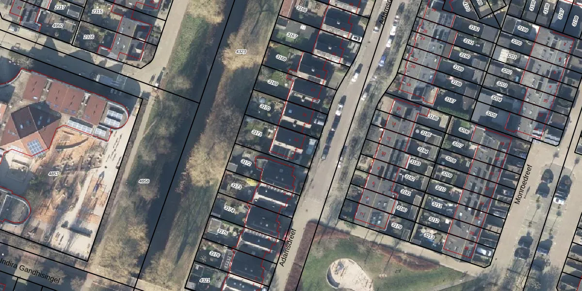 Het perceel waarop Adamsdreef 13 staat heeft een oppervlakte van 285 m². Dit is een middelgroot perceel. De perceeloppervlakte wordt geregistreerd door het Kadaster. Gedetailleerde informatie over de maten van dit perceel kunt u vinden in het rapport Kadastrale kaart met maatvoering van Adamsdreef 13.