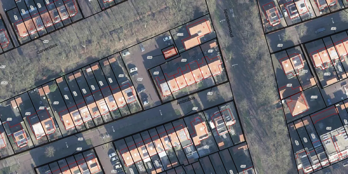Het perceel waarop Ambtsbos 12 staat heeft een oppervlakte van 595 m². Dit is een groot perceel. De perceeloppervlakte wordt geregistreerd door het Kadaster. Gedetailleerde informatie over de maten van dit perceel kunt u vinden in het rapport Kadastrale kaart met maatvoering van Ambtsbos 12.
