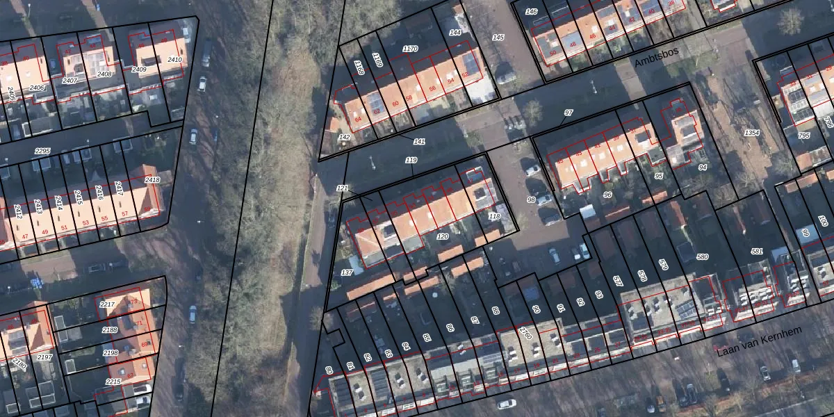 Het perceel waarop Ambtsbos 53 staat heeft een oppervlakte van 415 m². Dit is een groot perceel. De perceeloppervlakte wordt geregistreerd door het Kadaster. Gedetailleerde informatie over de maten van dit perceel kunt u vinden in het rapport Kadastrale kaart met maatvoering van Ambtsbos 53.
